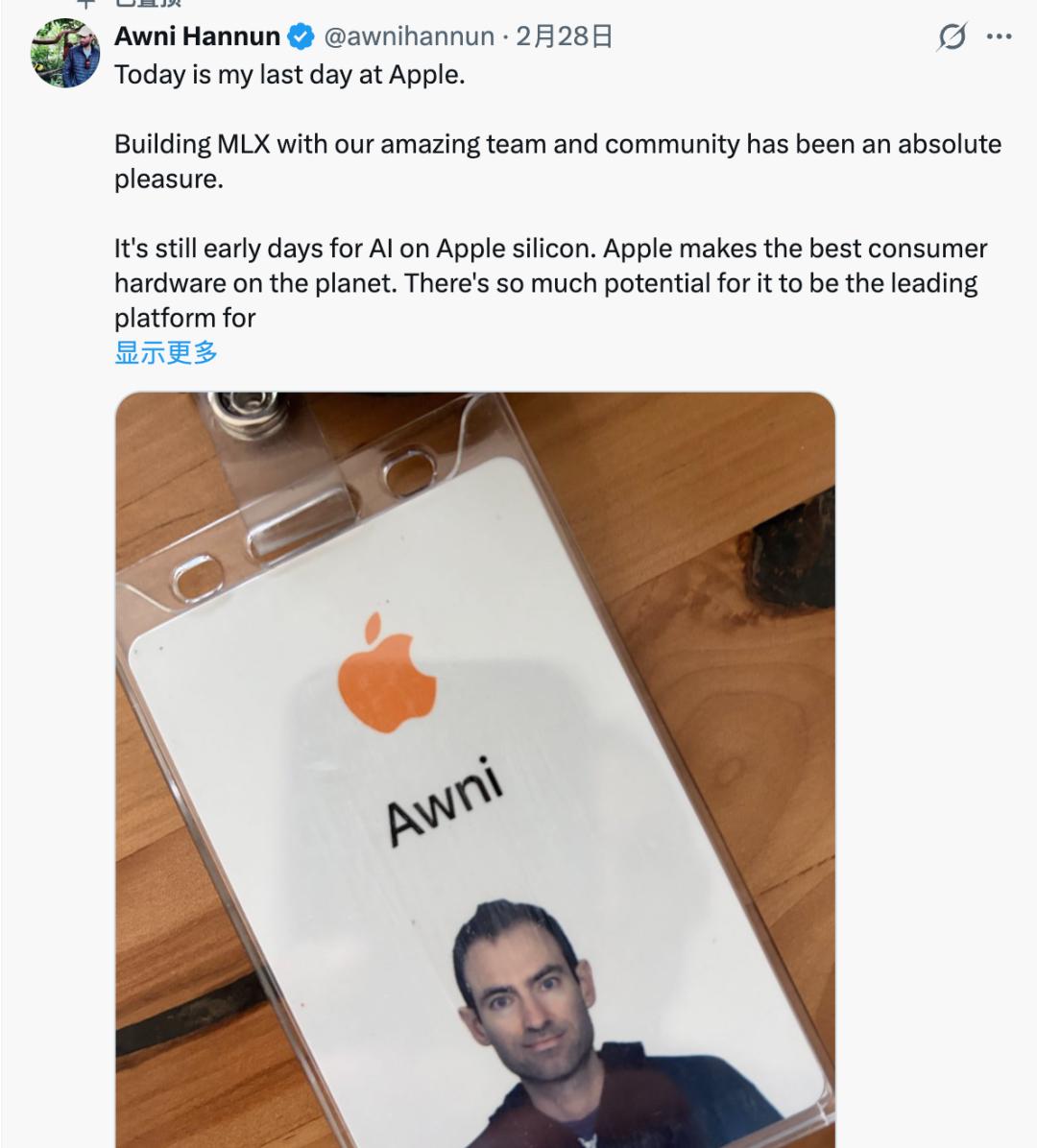 不过,这几天 MLX 的主要贡献者之一 Awni Hannun 刚从苹果离职,为该项目的后续发展增添了些许变数。Hannun 也表示 MLX 团队仍有许多优秀员工,可以放心。