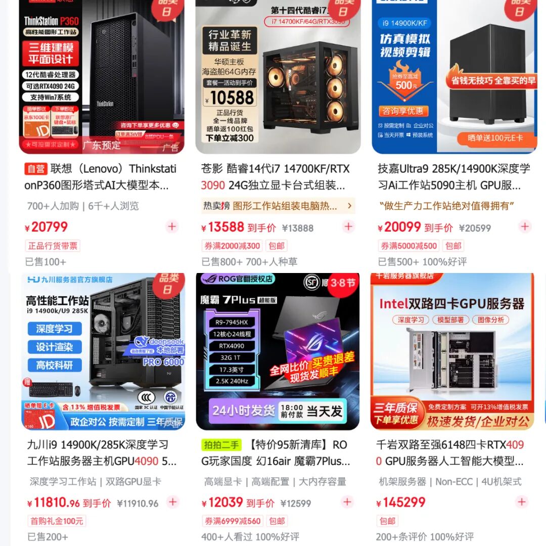 更别提,大模型普遍依赖 GPU 加速推理,显存得足够装得下模型。在英伟达消费级显卡线中,只有 90 后缀的 24GB 显存达到了配置要求,但配出整机(只考虑新机)的话合计成本至少在万元人民币以上,用新卡的话会飙到 4、5 万不等。