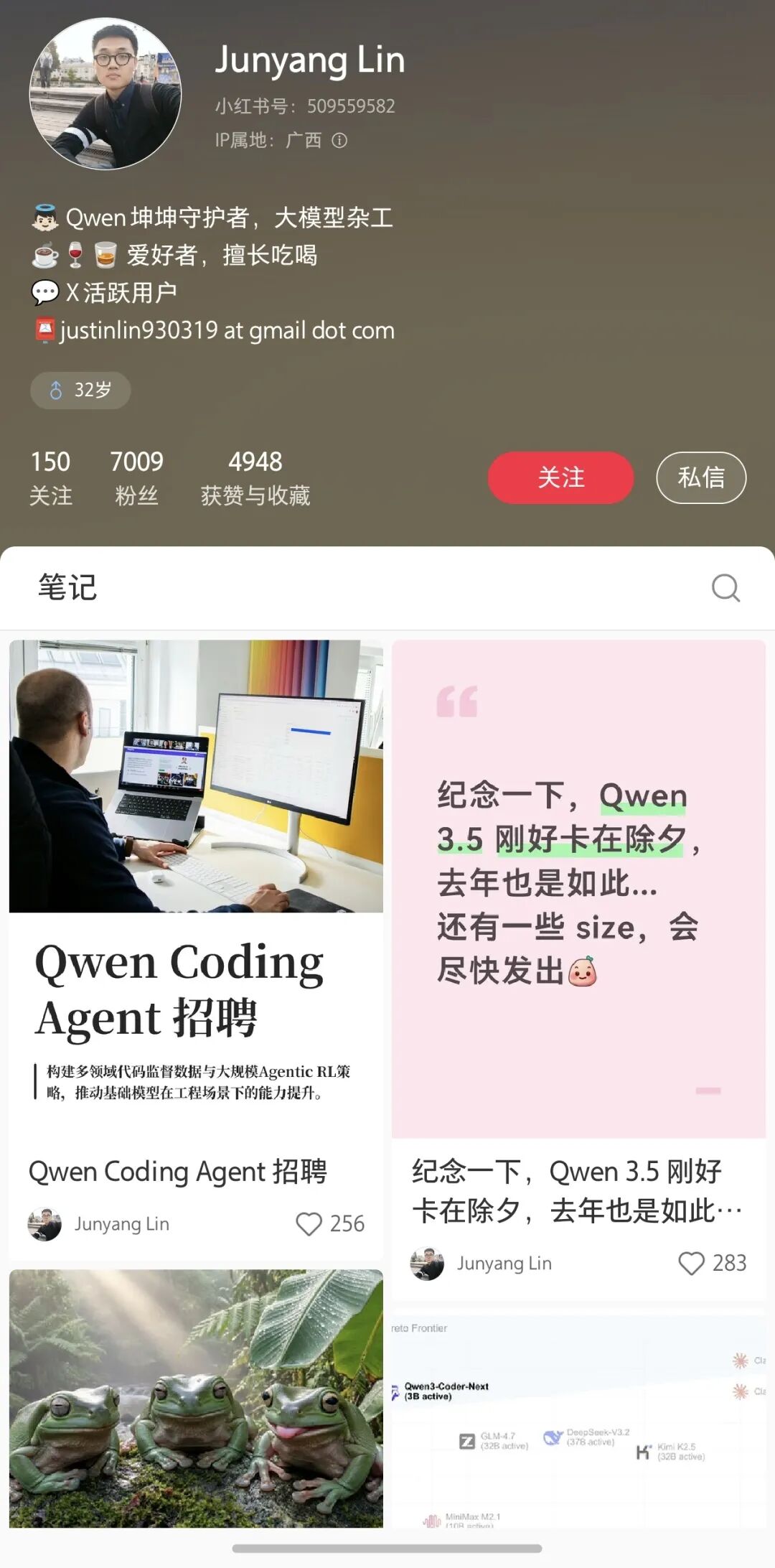 疑为林俊旸本人小红书主页