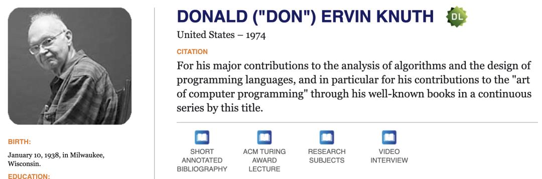他是写出了《计算机程序设计艺术》(TAOCP)、发明TeX的图灵奖得主,算法界祖师爷。