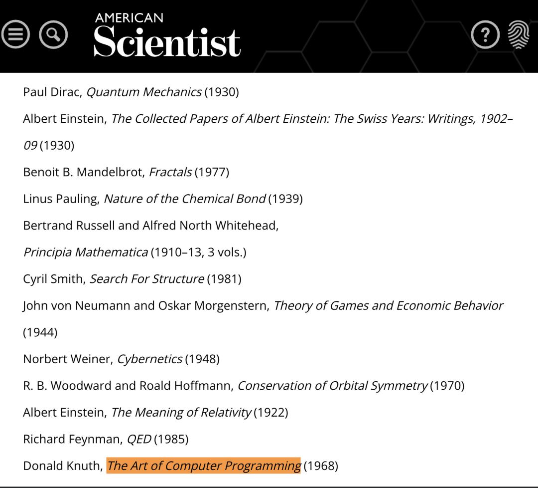 高德纳写《计算机程序设计艺术》,已经超过半个世纪了,这套书记录了人类算法思想的发展。