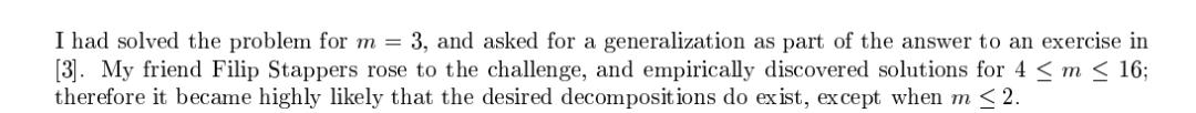 此前,高德纳已经解决了m=3的情况,他的朋友Filip Stappers又通过实验找到了4≤m≤16的解。