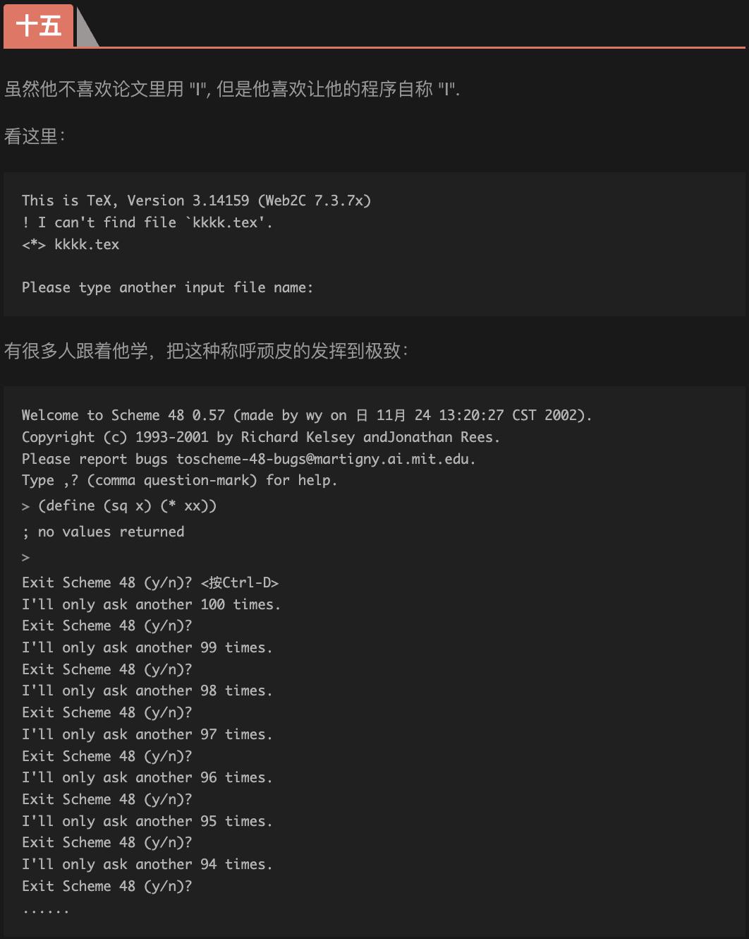 对他来说,「文学编程确实是由TeX项目派生出来的最重要的东西」。
