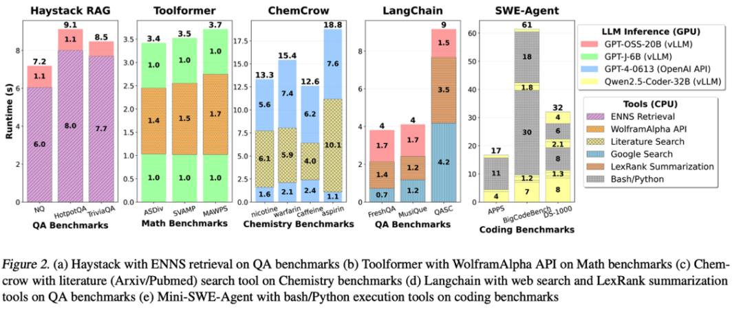 在佐治亚理工学院(Georgia Tech)与Intel实验室的研究人员联合发表的论文《A CPU-CENTRIC PERSPECTIVE ON AGENTIC AI》中,对五大Agent框架(HaystackRAG、LangChain等)的延迟剖析,给出了如下的结论: