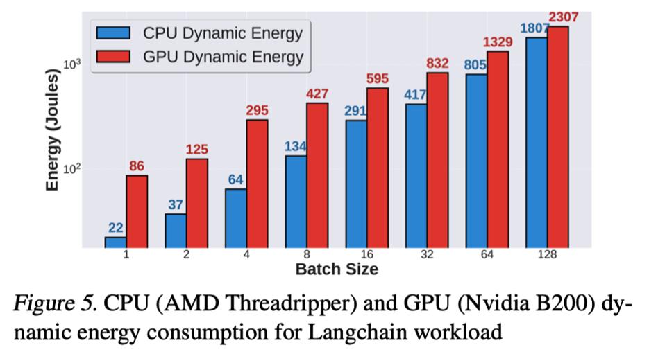 当Batch Size=128时,CPU能耗达1807焦耳,GPU为2307焦耳;此时的CPU能耗占比高达44%,与GPU平分秋色。这意味着数据中心必须重新设计电力与散热方案,CPU的能效比成为关键指标。