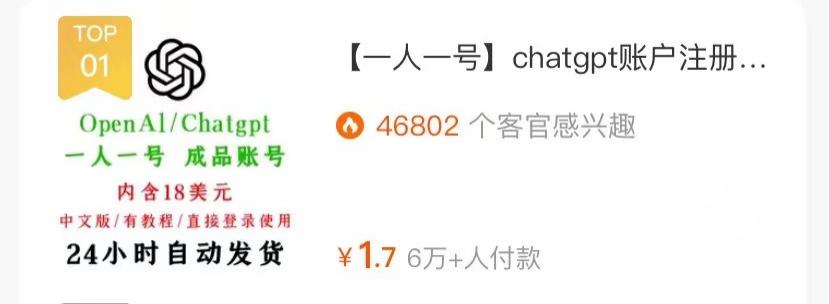 于是,帮人代注册账号的卖家成为了靠着ChatGPT赚到钱的第一波人。