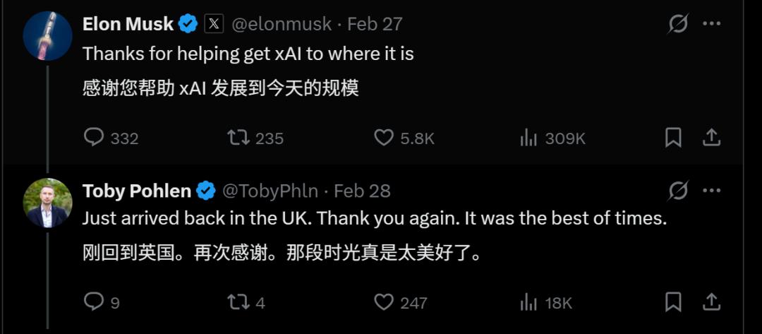 包括这一次xAI前创始成员Toby Pohlen(以下简称托比哥)的爆料,也盖戳证实了这一点: