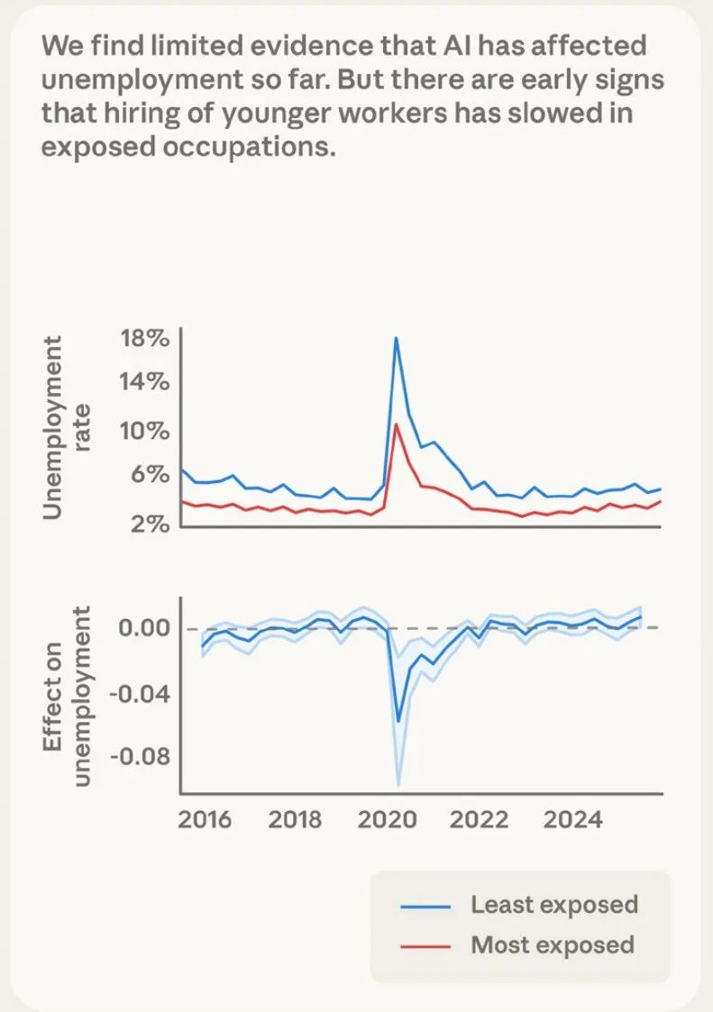 可另一个信号更危险:22-25岁的年轻人,在高暴露岗位的入职率直接掉了14%。老员工还能靠经验苟住,新人连门都摸不到了。