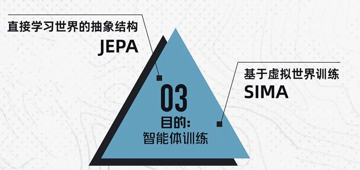第三层,是世界模型的“目的层”,也就是智能体训练,让AI最终能在这个世界里行动、做任务、完成决策。