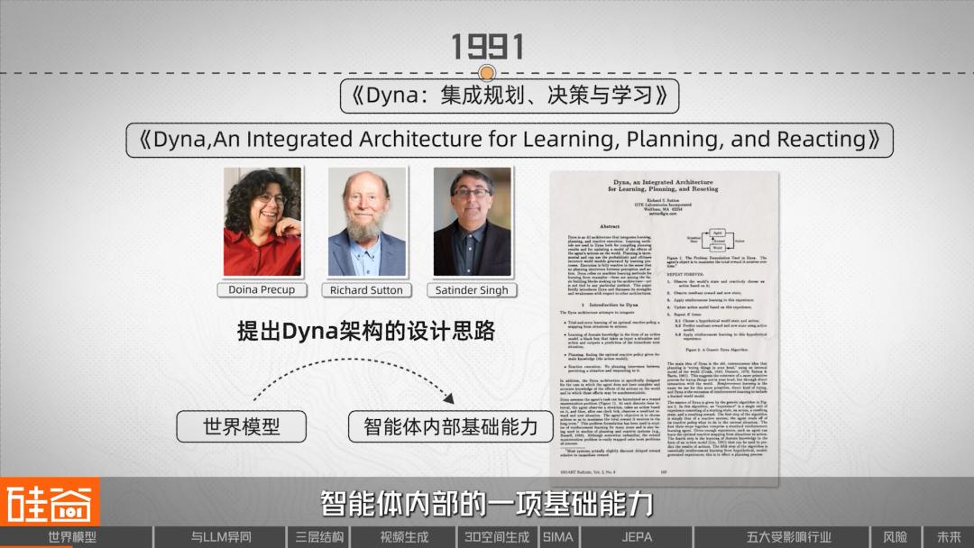于是,在AI和强化学习的早期研究中,这个思想以不同的名字反复出现。比如在1991年,Richard Sutton、Doina Precup和Satinder Singh在论文《An Integrated Architecture for Learning, Planning, and Reacting》中提出了后来被称为Dyna架构的设计思路。