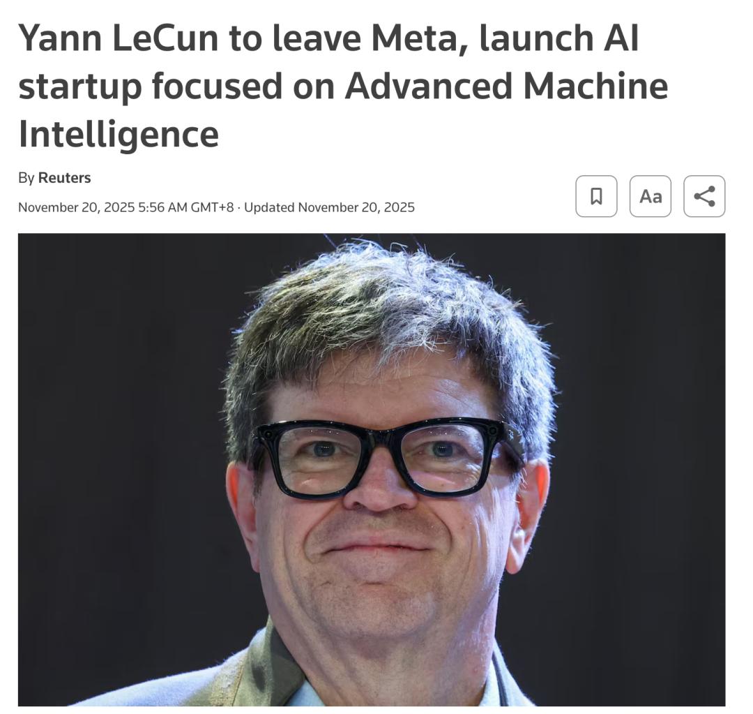 离开工作了12年的Meta后,这位65岁的图灵奖得主、深度学习先驱并没有选择退休,而是回到巴黎创立了一家名为Advanced Machine Intelligence的公司。他要做的事情,与硅谷主流的大模型路线截然不同。