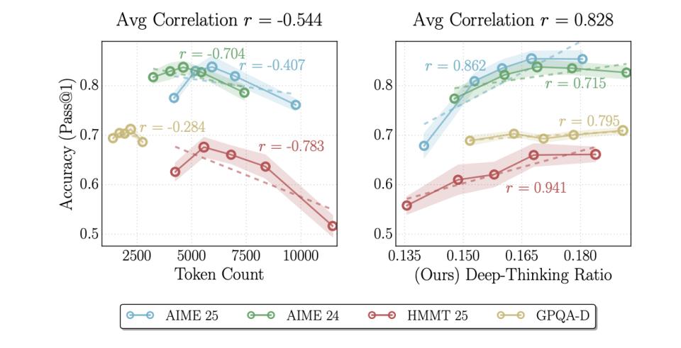 至此,我们可以确定,DTR 确实为我们提供了一个基于模型内部动力学机制、而非表面字数的思考质量标尺。