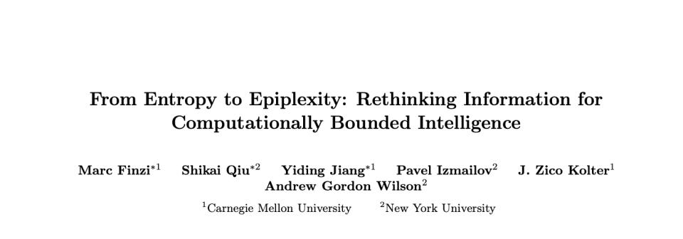 最近卡耐基梅隆和NYU的一篇论文《从熵到表观复杂性:为计算受限的智能体重塑信息论》,为我们提供了一个信息论上的线索。
