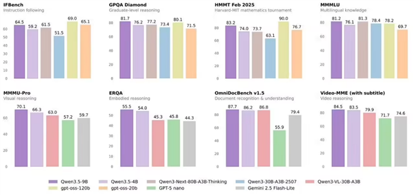 玩过Qwen模型的网友都知道,小尺寸的AI模型是它们的灵魂,本地部署的吸引力是无法抵挡的,而Qwen 3.5系列这次不仅小,性能也够强,其中9B版性能就媲美gpt-oss-120B。