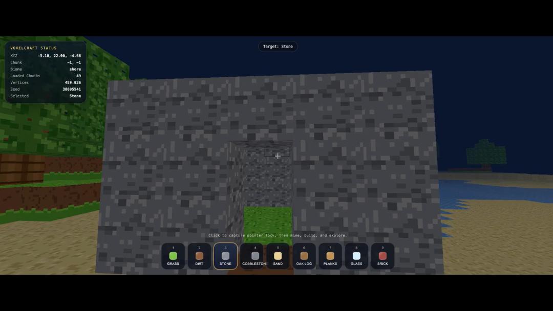 这是 X 平台上用户 @Angaisb_ 用 GPT-5.4 编写的 Minecraft 游戏,无论是主视角的行动逻辑(奔跑、跳跃、搭建),还是游戏中方块的材质和美观程度,几乎都无可挑剔。