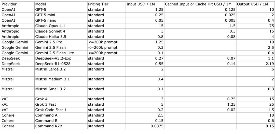 各家LLM token 计价表 (Claude价格遥遥领先)