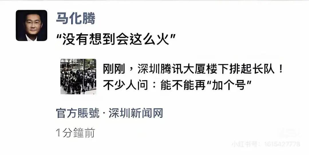 上周五(3月6日),Pony在朋友圈发文:“没想到(排队安装小龙虾)会这么火”。