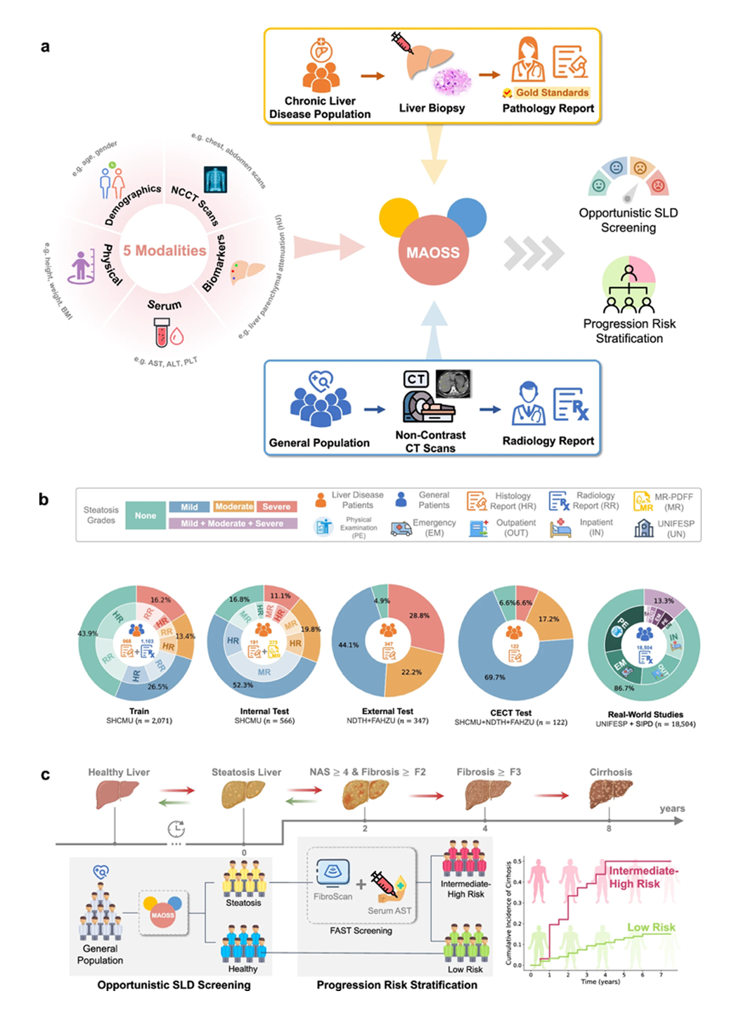 IT之家 3 月 9 日消息,据阿里巴巴达摩院官方今日消息,阿里巴巴达摩院联合中国医科大学附属盛京医院、南京大学附属鼓楼医院等机构研发出脂肪肝筛查 AI 模型 MAOSS,通过平扫 CT 影像、血清指标等常见检查,不仅可精准筛查肝脂肪分期,更能评估肝纤维化进展,将高风险患者检出率从 16.6% 大幅提升至 52.4%。