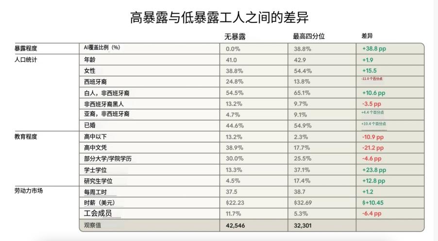 数据显示,相比于那些对AI免疫的零暴露人群,高暴露度人群的画像是这样的: