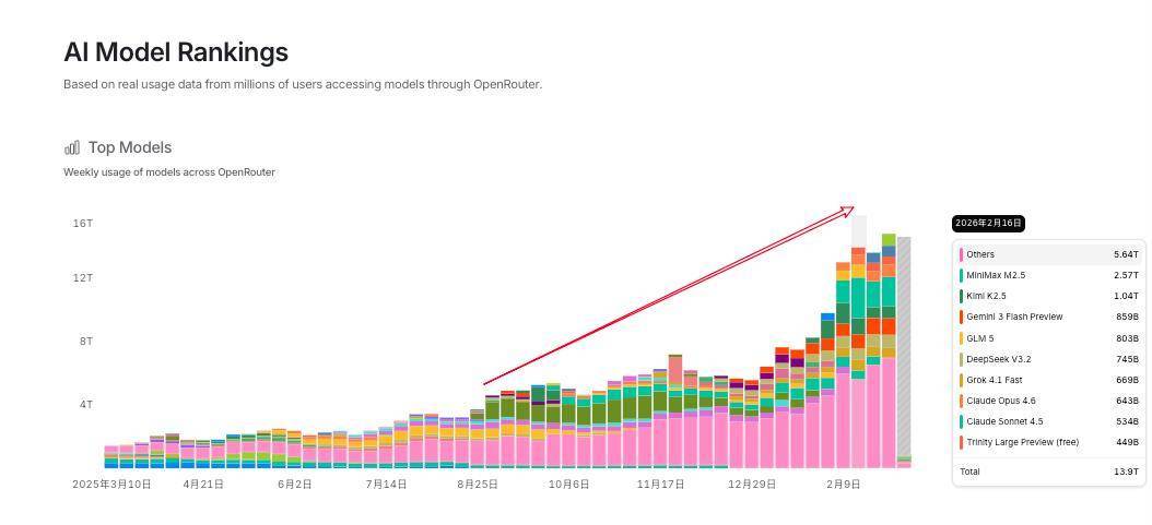 在模型中转网站 Openrouter 上,这几个月所有模型的 API 调用量都在增加,赚麻了。