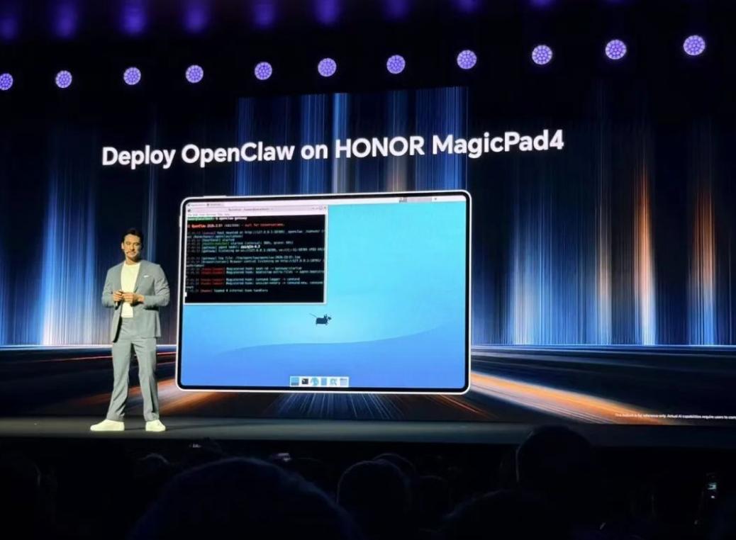 3月1日,荣耀在MWC 2026全球发布会上透露,用户可以在荣耀MagicPad 4上部署爆火全球的OpenClaw。