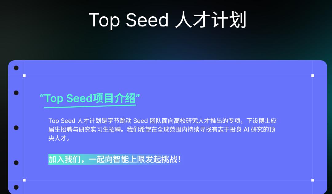 字节跳动的Top Seed实习研究计划为实习生开出最高2000元一天的工资,并邀请优秀高中生当顾问。去年,字节跳动创始人张一鸣还和上海交大教授俞勇共同成立了知春创新中心,计划旨在每年招收30名16-18岁的“全职预备研究员”,将其培养成泛计算机和人工智能领域的创新人才。