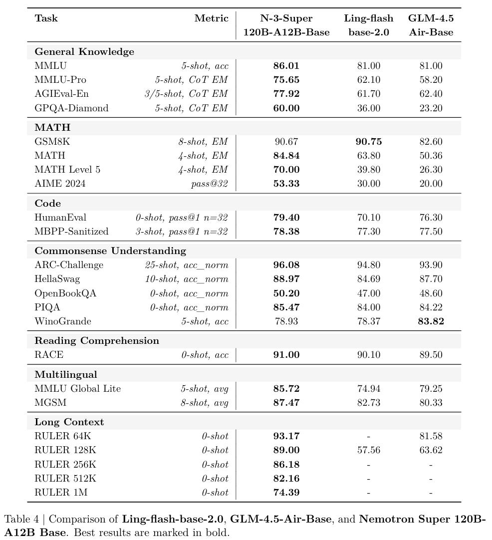 最终练出来的「基础模型」,在MMLU上跑到86.01,MMLU-Pro 75.65,MATH 84.84,把同等体量的顶流模型远远甩在了身后。