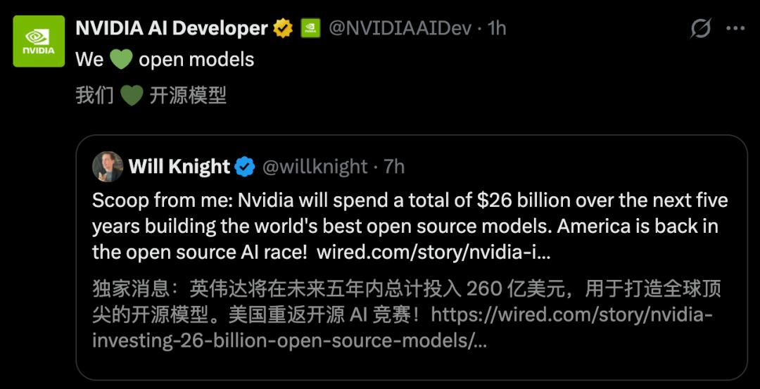 未来五年,英伟达将投入260亿美元,用于打造全球顶尖的开源模型