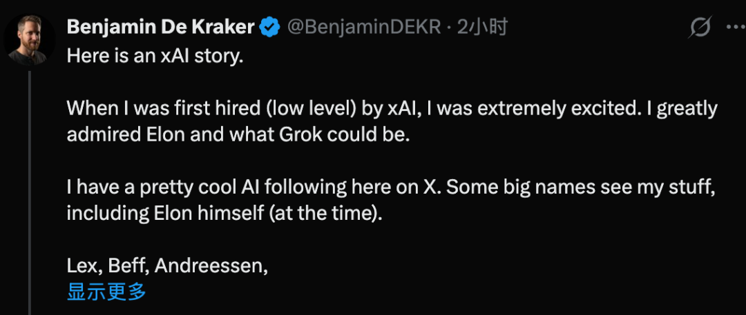 不过,最近也有一名叫 Benjamin De Kraker 的前员工爆料,说所谓的扁平文化都是幌子,xAI 是他见过官僚主义最严重的地方。