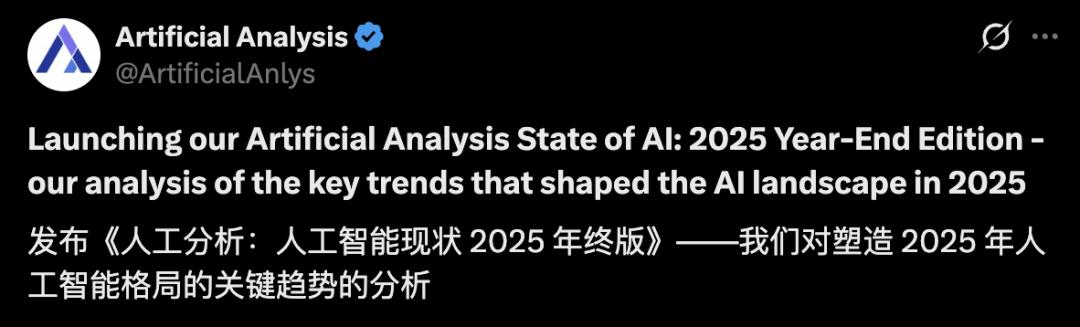 这就是Artificial Analysis刚刚发布的《2025全球AI年终报告》为我们揭示的疯狂现实的一个侧面。