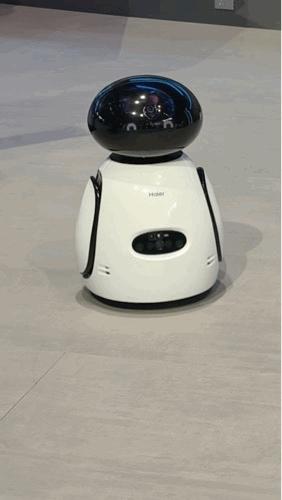 海尔此次展出了一台企鹅形状的家庭陪伴机器人。