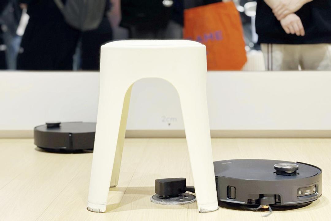 在他们的动态演示区,MOVA Pilot 70缓缓飞起来,在十秒之内就到了二楼开始扫地。工作人员称,这台机器人设置了九重防护体系,保证在飞行的时候精准避障护航。