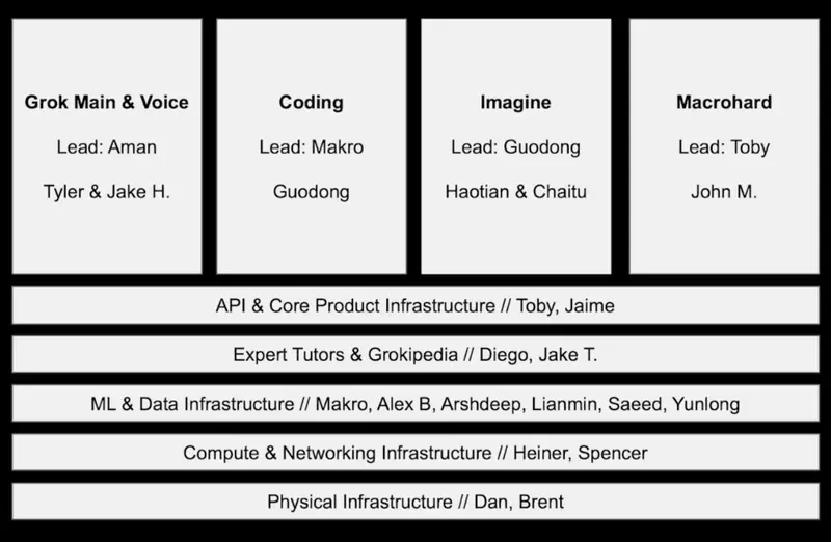 图注:xAI重组后的组织架构与负责人名录