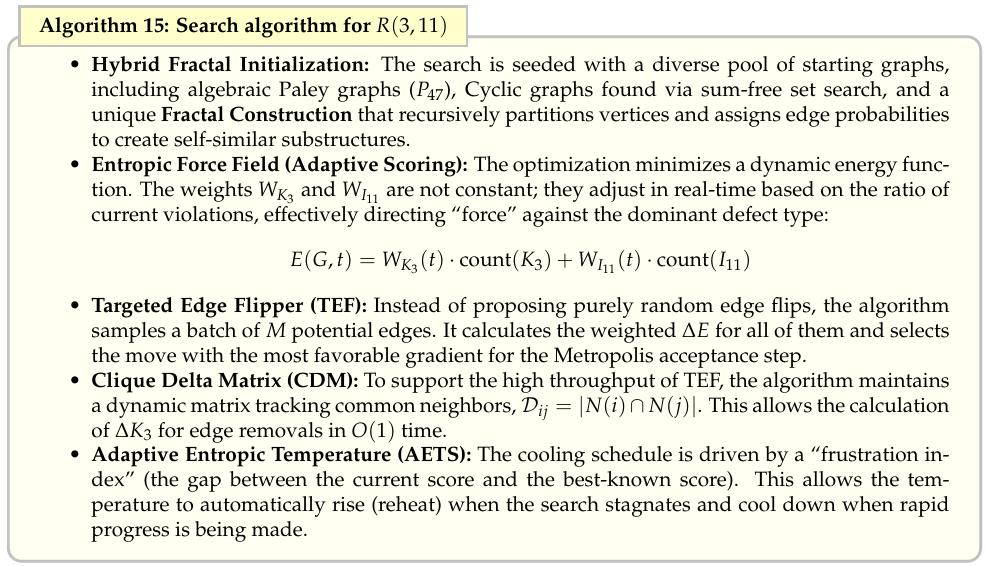 R(3,11)的算法就用了分形初始化+自适应能量场+动态温度调节的组合。