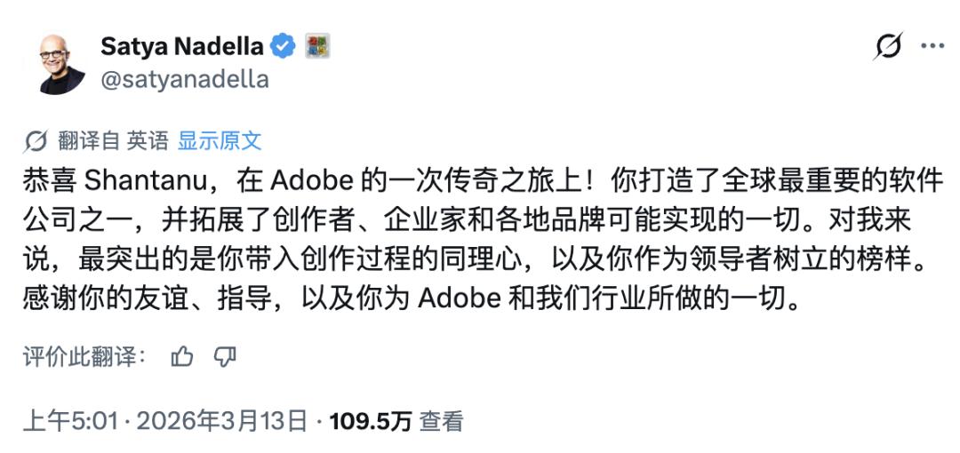 此后几乎所有主流软件公司都在用这套逻辑,Adobe 某种程度上重写了行业的商业模式。也难怪微软 CEO 纳德拉会发文称他「打造了全球最重要的软件公司之一」。