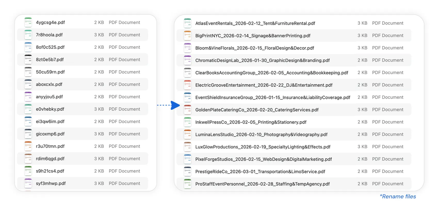 例如,面对杂乱无章的图库,Manus 能迅速扫描并按内容自动建立子文件夹进行分类整理;面对数百份发票,它仅需执行几行终端命令,即可在数分钟内完成标准化重命名。