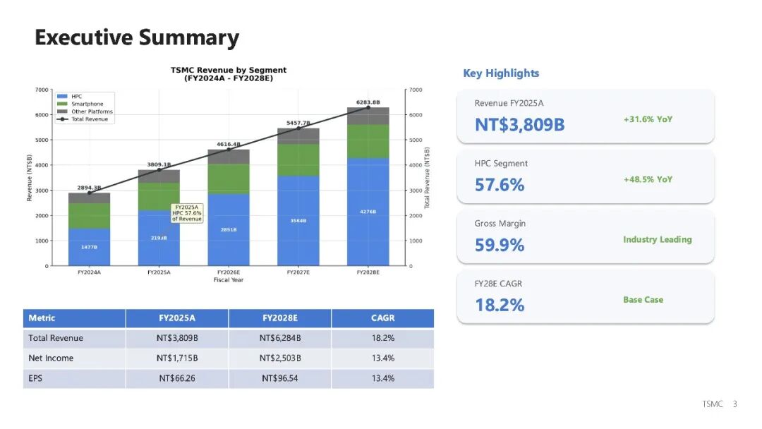 任务:基于台积电年报和业绩沟通会信息,构建台积电的营收模型,读取多个研报,设计对应的假设,基于最新的信息对台积电营收建模,然后基于 PPT 模版产出 PPT ,并写一个 Word 文档研究报告和 Excel 图表。