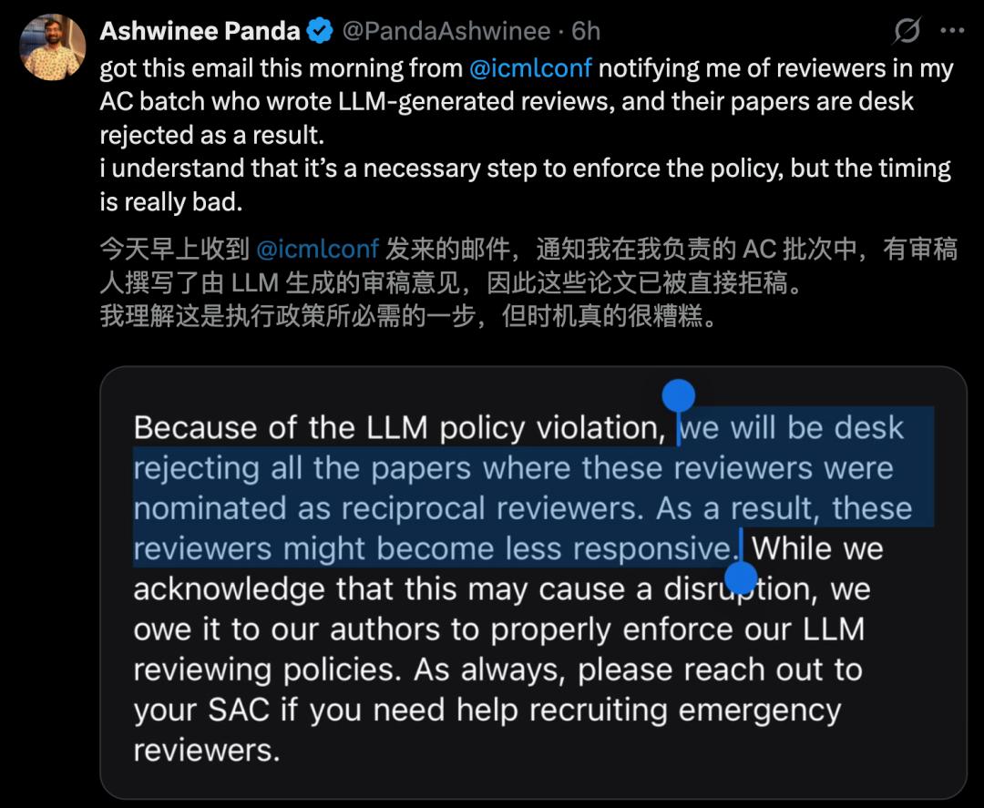 据Alexander Terenin的理解,ICML并非完全禁用LLM,只要是签署的政策,就不可违背。