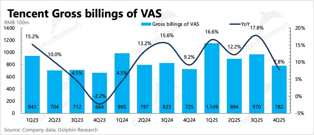 从递延收入看,Q4增值服务流水环比下降10%,下降幅度要比往年更大一些。这里除了有音乐付费降速、视频付费直接拖累等影响外,游戏自身流水应该是正常表现。