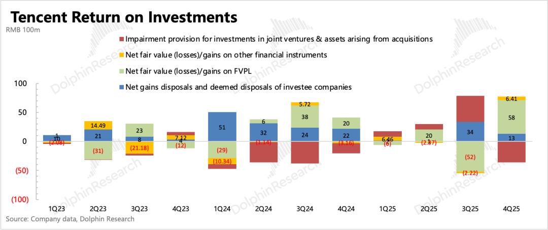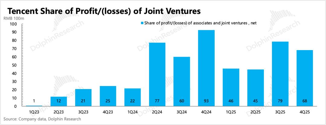 关于投资利得,海豚君基于原指标定义(2025年之前的确认范围),主要看其他收益净额(包含投资收益),以及分占联营/合营公司盈利两个部分。