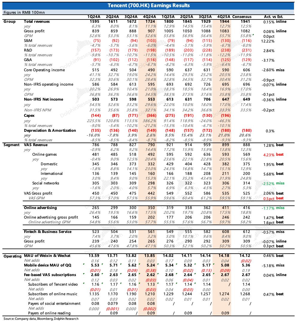 1. 游戏不负厚望,预计今年仍是增长核心:这一轮产品周期很强劲,不仅新游给力,在长青游戏的支撑下,增长持续性也不错。四季度收入增长21%,本土增长15%、海外增长32%。