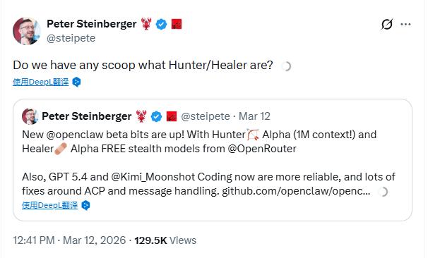 近日一款名为Hunter Alpha的AI模型在开发者平台OpenRouter匿名上线,具备逾1万亿参数规模及100万token上下文窗口,发布后总调用量迅速登顶。因参数规格与外界流传的DeepSeek V4信息高度吻合,一度引发大规模猜测,就连龙虾之父Peter Steinberger也在X上发帖询问,有没有人知道模型的具体细节。