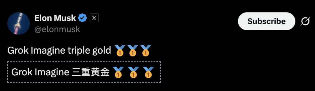 GrokImagine斩获三枚金牌!马斯克奔走相告。