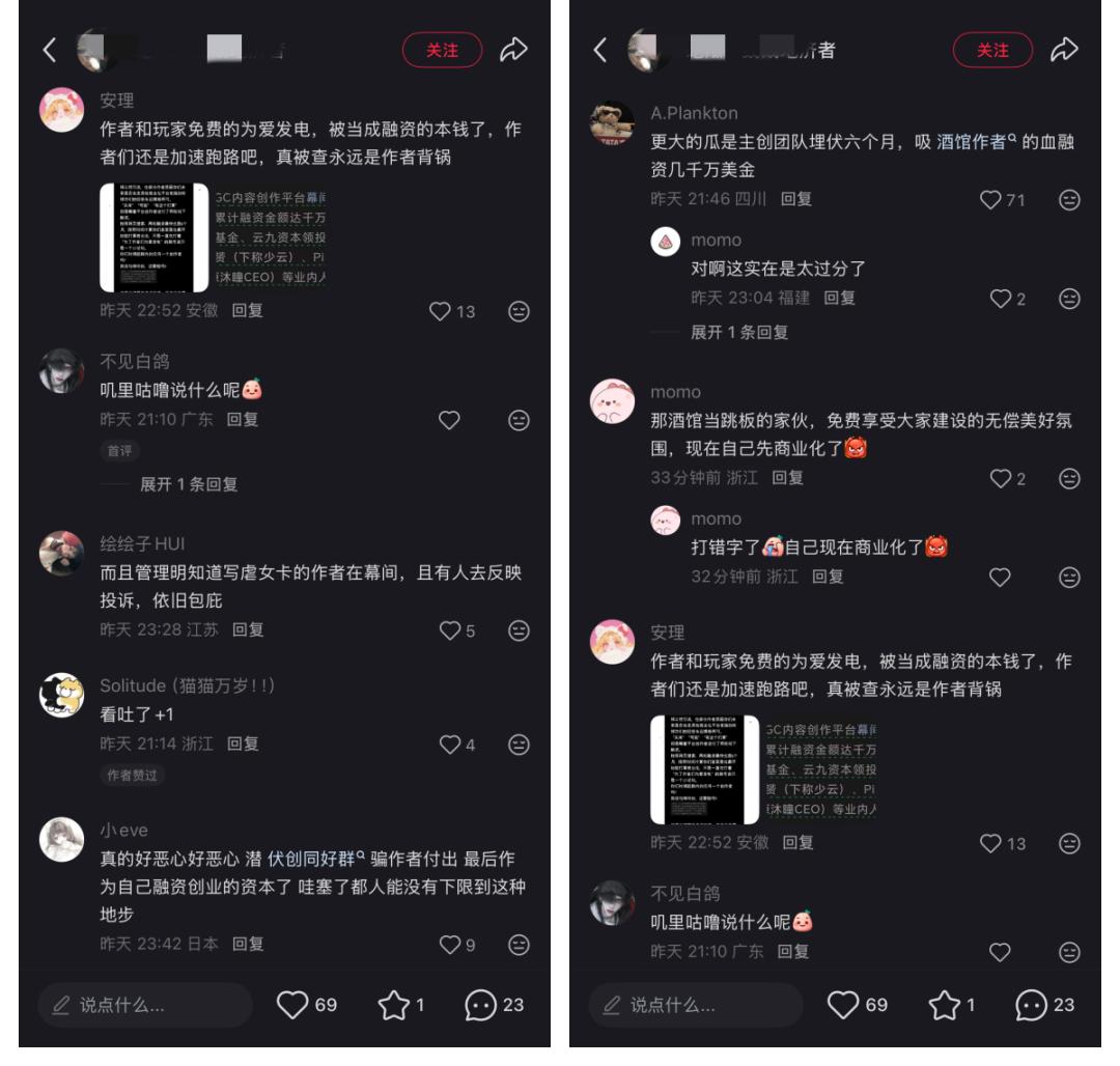 但当「幕间」传出融资消息之后,这件事情就变味儿了,创作者们认为,「幕间」将自己辛苦创作的内容当做资产,然后在投资人那里进行了变现,所以这被创作者认为是一种背叛。