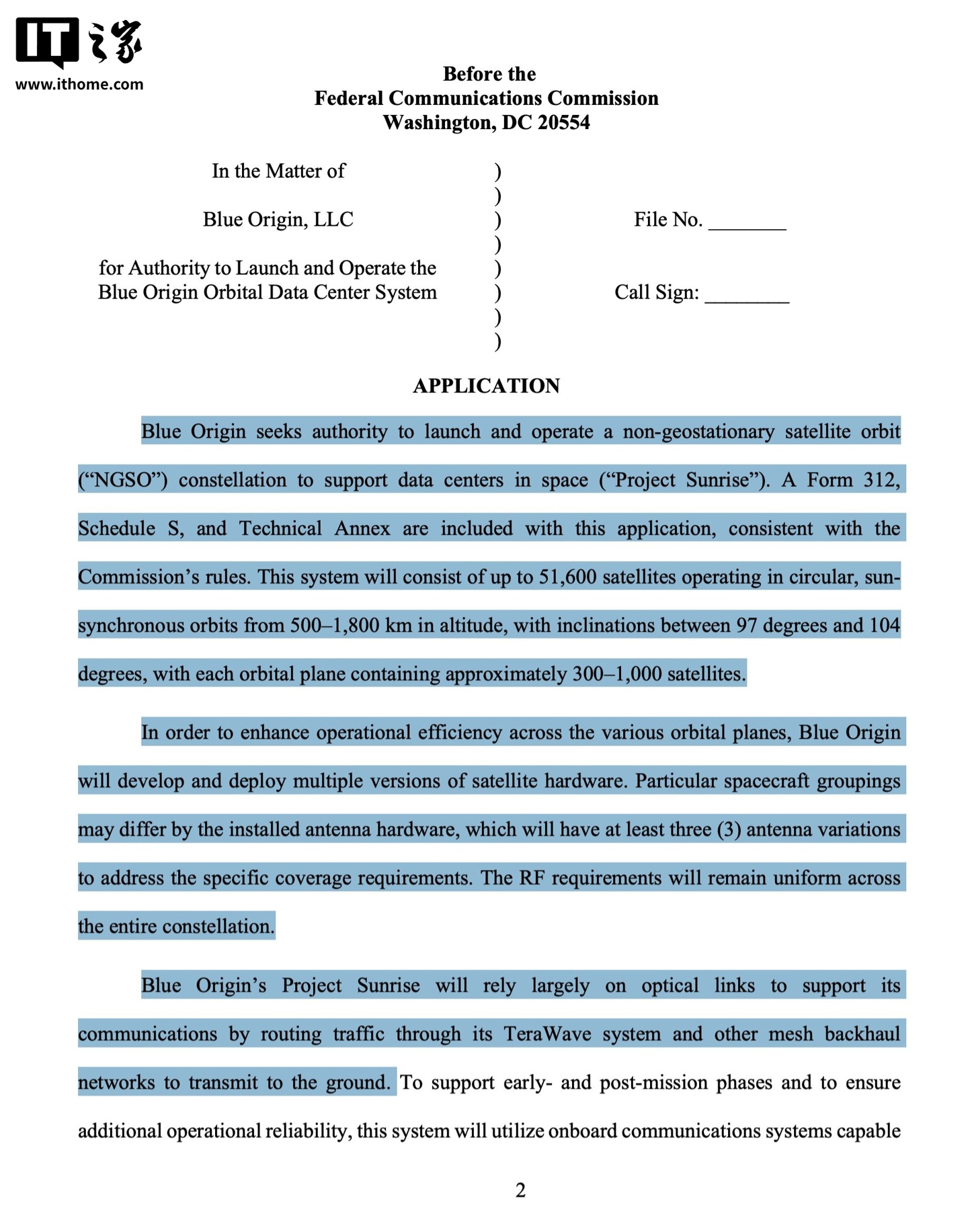 报道称蓝色起源已于 3 月 19 日向美国联邦通信委员会(FCC)提交了官方申请文件,寻求监管部门批准其庞大的卫星网络部署计划,计划在地球轨道上部署总计近 52000 颗具备高度专用性的卫星。IT之家附上相关截图如下: