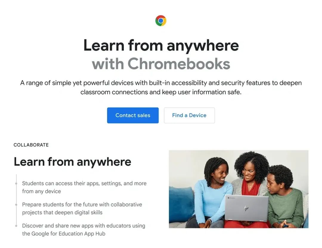 由于其低成本和易于使用(和维护),Chromebook 已成为学生的标准学习设备。对于chromebook来说,没有比谷歌教育工作空间(Google Workspace for Education)更自然的搭配了。这套工具包括 Google Docs、Sheets、Gmail 和 Forms 等常用工具与——每个工具都可供教职员工或学生使用。(还有免费版本)。
