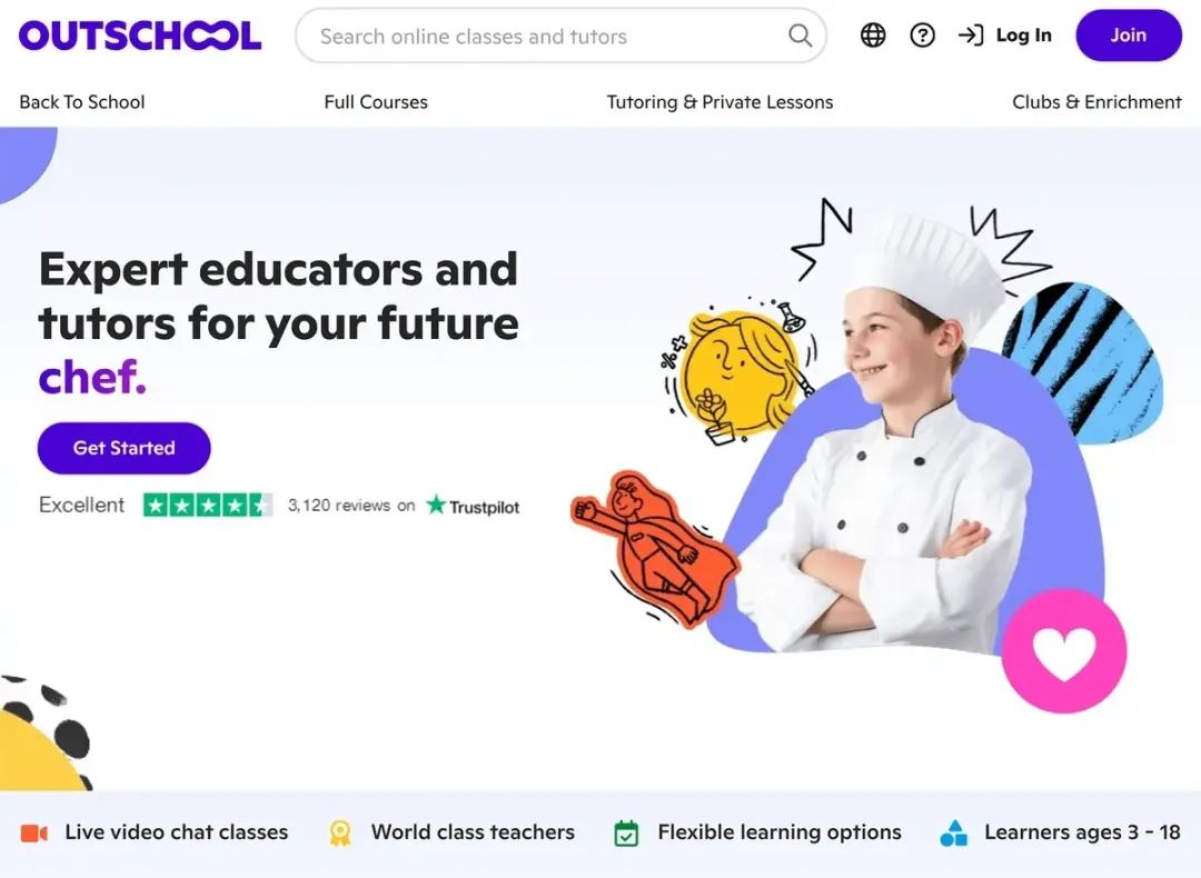 Outschool 是家庭教育领域另一家有趣的教育科技初创公司,为 3-18 岁的孩子提供线上课程。