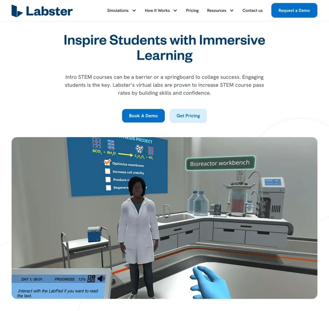 例如,丹麦初创公司 Labster 提供了交互式 VR 实验室,STEM 学生可以使用这些实验室进行实验。无需耗资百万美元的实验室。