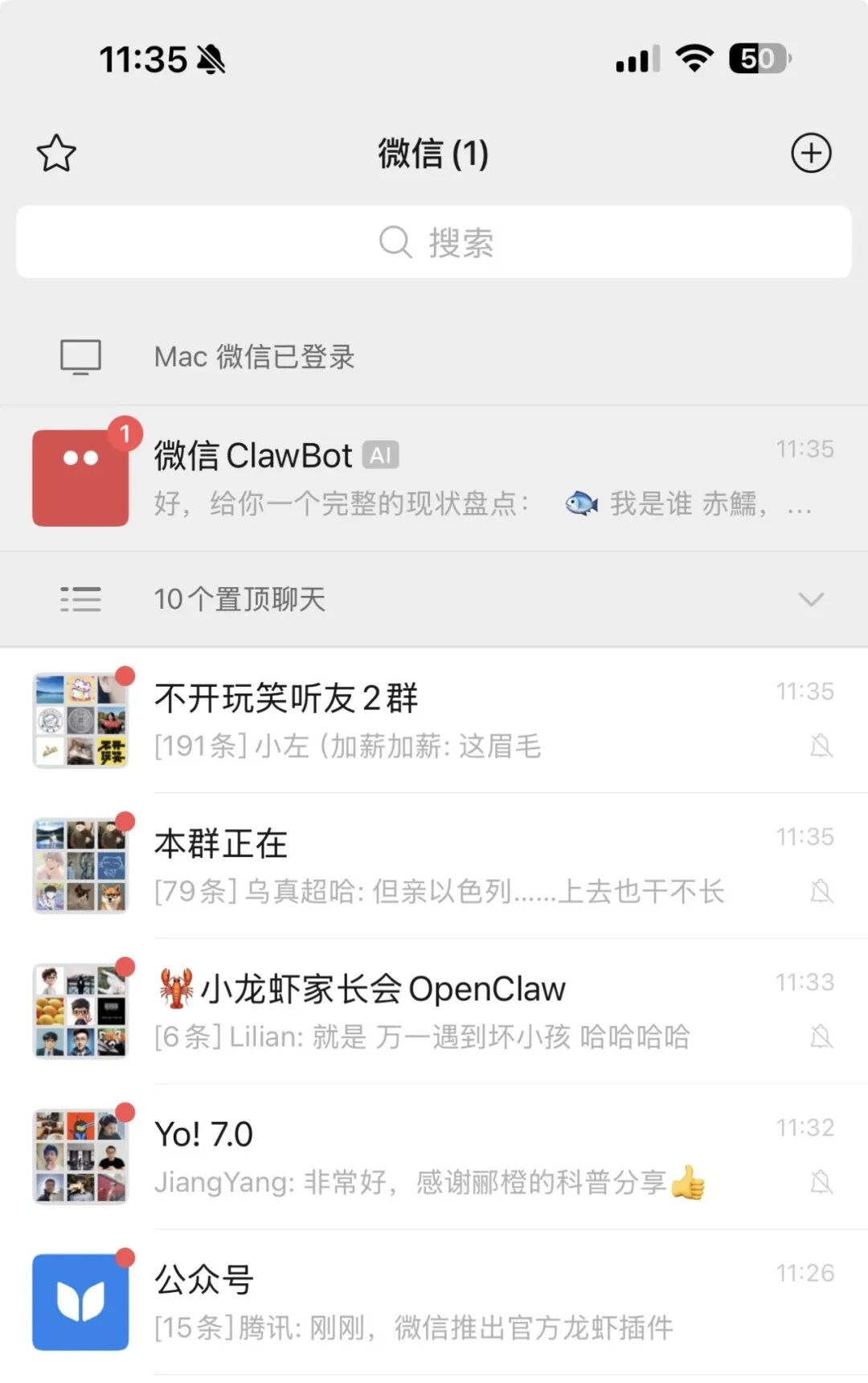 能看得出来腾讯也有点焦虑,很少追热点的浓眉大眼的微信,也在这几天上线了可以接入 OpenClaw 的官方即机器人,可以在一级页面跟用户聊天。