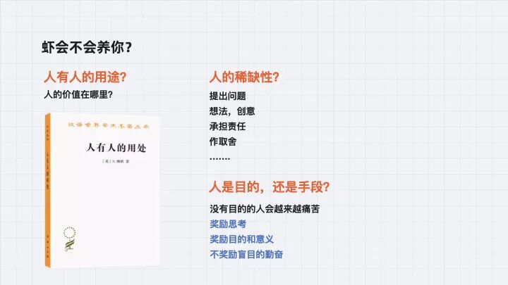 控制论之父维纳有一本经典的书叫《人有人的用途》,探讨机器发展之后人何以自处。问题到今天更加严峻了。